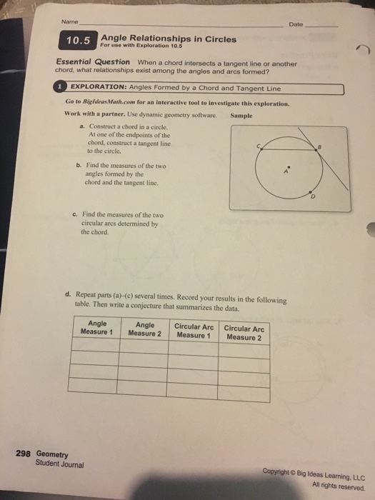 Solved Date Name 10 3 Using Chords For Use With Exploration Chegg Com
